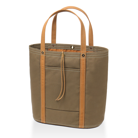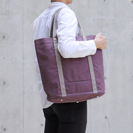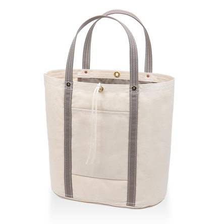 素材: 綿帆布 B4サイズが縦向きにも横向きにも入ります。マチも広く、底に鋲があり、たくさんの荷物を入れることができます。かばんの内側にファスナー付きのポケットがあり、鍵などの貴重品を入れることができます。ハトメ(穴あきの金具)が付いていて、綿ひもで口元を閉じることができます。一澤帆布製No.168 大と同じサイズです。